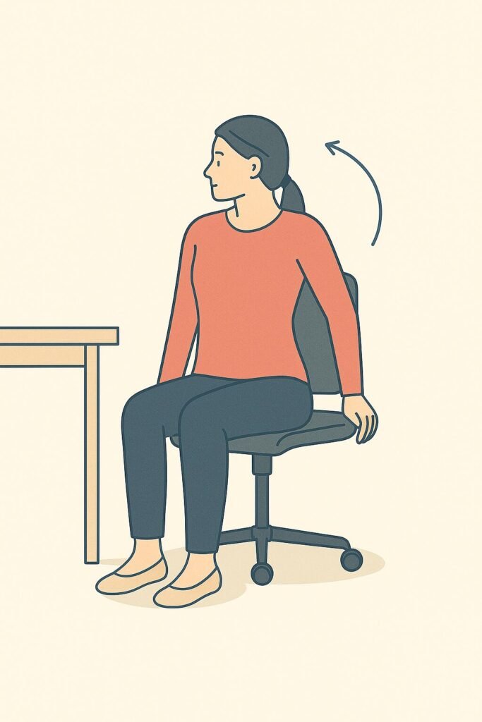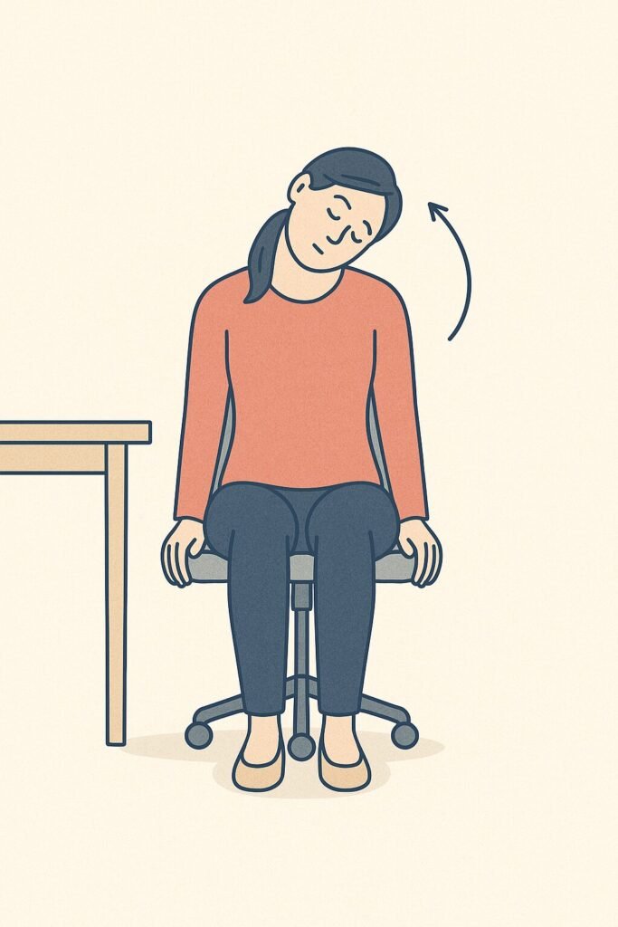 Slowly tilt your head from side to side, then forward and back. It’s a small move, but it releases stiffness from staring at screens.
